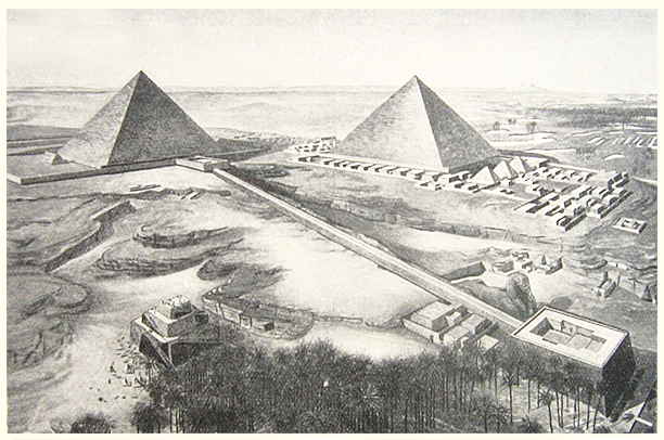 Das Pyramidenfeld bei Gizeh nach einer Rekonstruktion von Uvo Hölscher