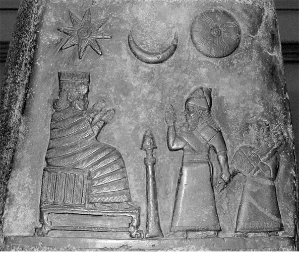 Die heute im Louvre befindliche Kalkstein-Stele zeigt den kassitischen König von Babylon Meli-Schipak (reg. 1186-1172 v. Chr.), der seine Tochter Hunnubat-Nanaya vor die Göttin Nanaya führt. Über dem Kopf der Göttin sieht man den Ischtar-Stern, daneben die Mondsichel, das Zeichen des Mondgottes Sin, und die Sonnenscheibe des Sonnengottes Schamasch. – Der Name Nanaya ist wahrscheinlich ein Diminutiv von Inanna (vgl. Groneberg 153).