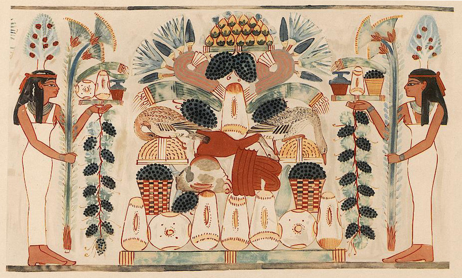 Opfertisch mit zwei Baumgöttinnen aus dem Grab des Nacht in Theben (TT 52)