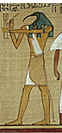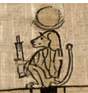 Abb.: (1) Thot als Schreiber beim Totengericht (vgl auch die Gesamtansicht des Blattes). – (2) Thot als Schreiber beim Totengericht, dargestellt als Pavian.